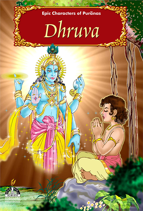 Dhruva, a bright star right in the middle of a large constellation ( Dhruva mandala), was a great devotee of Lord Narayana at the tender age of five. Son of King Uttanapada and Queen Suneethi, he left home and went to the forest in search of the Lord after his step-mother forbade him from sitting on his father’s lap and told him to make himself worthy of his father’s love. Narada met him on the way and tried to persuade the child to return home but Dhruva was bent upon achieving what his father and grandfather had not. He performed very severe penance and meditated on the Dwadashakshara manthra into which Narada had initiated him. The young devotee not only got the Lord’s darshan but also experienced His presence within himself. After this, the Lord granted him immortal status but not until he had performed his duties to his kingdom and his people. Dhruva went on to becoming the emperor after his father became too old for state duties. He avenged the death of his brother at the hands of a Yaksha by killing thousands of yakshas. Only his grandfather, Swayambhu Manu, was able to convince him to stop the bloodshed. This pleased Kubera as Dhruva had renounced anger and hatred. By and by,Dhruva handed over the reins of his kingdom to his son and sat in deep meditation of Lord SriHari.