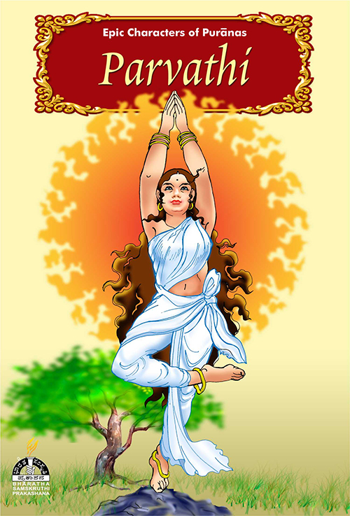 Matha Parvathi, the mother of the entire world, is delineated in this book in her three forms- as Sati, Parvathi and Kathyayani. Sati was Dakshabrahma and Prasuti’s daughter. Her consort, Shiva, didn’t get up to pay respects to her father due to which he was cursed. Getting to know that her father was performing a yagna for which all her sisters were invited, Sati sought Shiva’s permission to attend the yajna . As Shiva refused to accompany her, she went alone and as expected, her father insulted her husband. Unable to bear it, Sati entered the sacrificial fire. Shiva lost no time in sending Veerabhadra who not only spoilt the yagna but killed Daksha as well. Later, upon Brahma’s request, he brought back Daksha to life who completed the yagna and offered havis to Shiva. Shiva retreated to the Himalayas as he had lost Sati and engaged himself in severe penance. Parvathi was born to Meena devi and Himavantha. She served Shiva with all devotion so that he would marry her. When he declined, Manmatha was sent to make him fall in love. Shiva was so enraged that his penance had been disturbed that he burnt Manmatha to ashes. In spite of the devas begging him to marry Parvathi, Shiva didn’t relent. So she gave up all her royal finery and continued to serve him through severe tapas. She recognized Shiva when he came to her disguised as a Brahmin after which they got married. A divine child, Kumaraswamy, was born to them in course of time. Devendra vested Kumaraswamy with the responsibility of getting the world rid of Tarakasura. Kathyayini was born of a divine light due to the yogic power of Sage Kathyayana. The purpose of her birth was to destroy the rakshasas as Mahishasura had wrested power over heaven from the devas. She laid a condition to Mahishasura when he desired to marry her – that he must defeat her in battle. A terrible battle ensued in which Kathyayini crushed the marauding Mahishasura with her tender feet.
